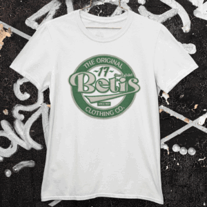 Luce con orgullo esta camiseta inspirada en el Real Betis Balompié, un diseño único que refleja la pasión y la historia del club verdiblanco. Ser bético es más que un sentimiento, es una forma de vida que se transmite de generación en generación.