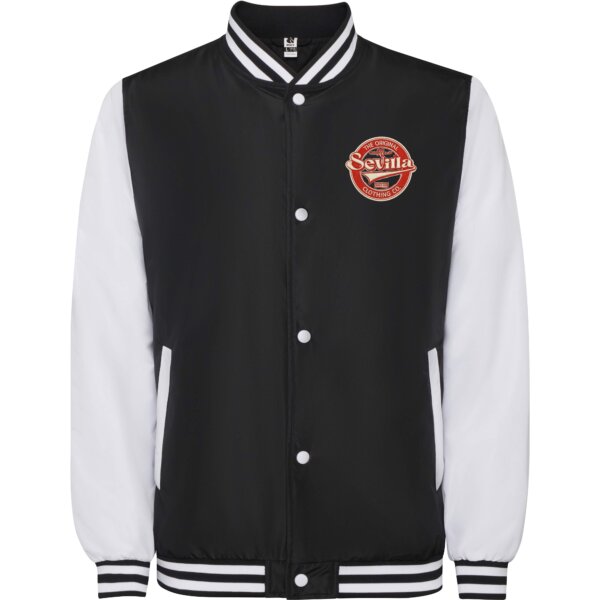 Chaqueta unisex ligeramente acolchada combinada con dos colores. Cuello, puños y bajo en rib 1×1, con dos